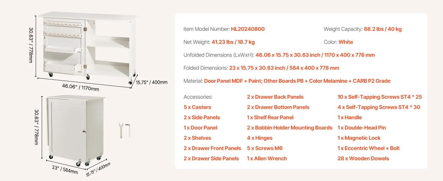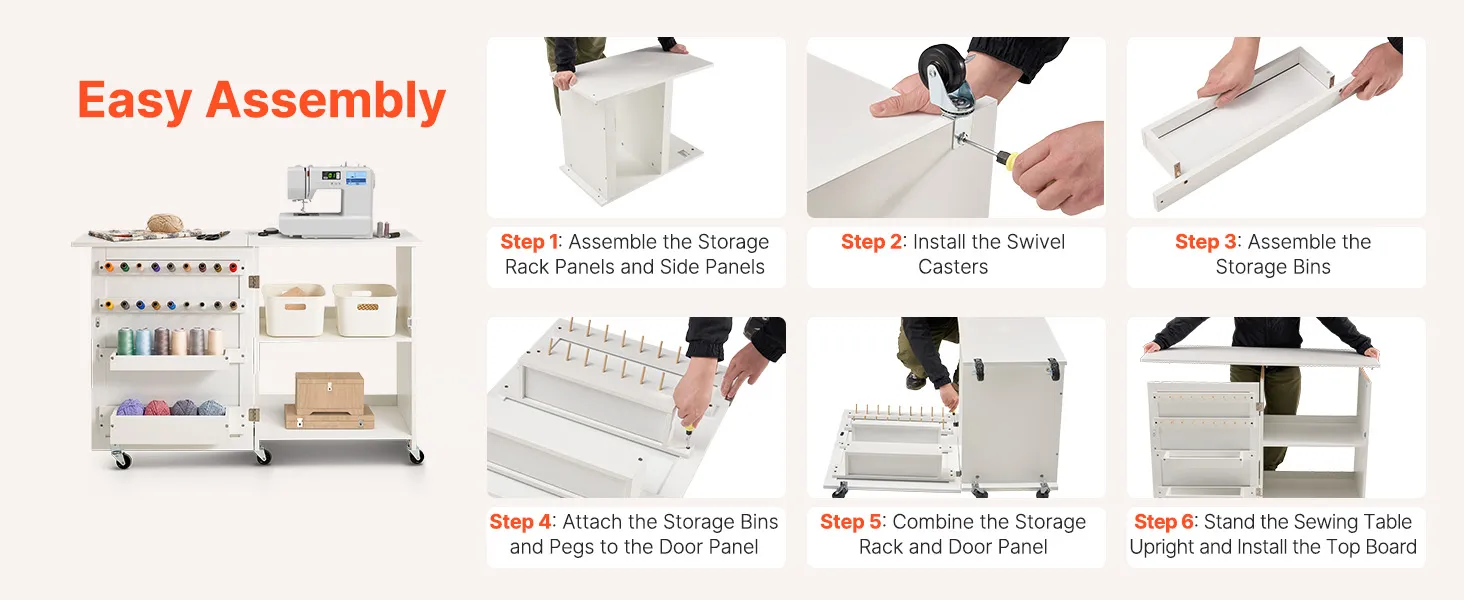 We provide clear, detailed assembly instructions, so you can easily follow the steps to assemble your sewing machine cabinet without hassle.