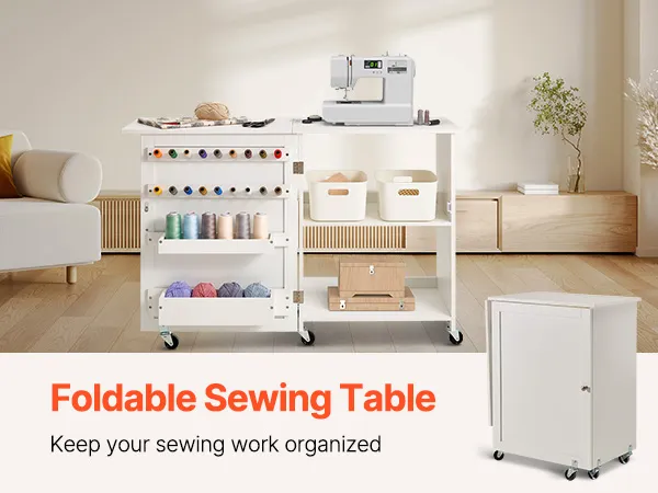VEVOR Folding Sewing Table, Multipurpose Sewing Machine Table with Compact Design, Wheels, Shelves, Storage Trays, Wooden Pegs, and Magnetic Doors, Sewing Desk Cabinet for Sewing Machine, White VEVOR Folding Sewing Table, Multipurpose Sewing Machine Table with Compact Design, Wheels, Shelves, Storage Trays, Wooden Pegs, and Magnetic Doors, Sewing Desk Cabinet for Sewing Machine, White