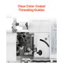 De kleurgecodeerde draadgeleiders op de overlockmachine maken de installatie eenvoudig en probleemloos. De vrije arm is ideaal voor mouwen, manchetten en andere smalle gedeeltes. LED-verlichting en een verstelbare naaivoet zorgen voor nette, gelijkmatige steken.
