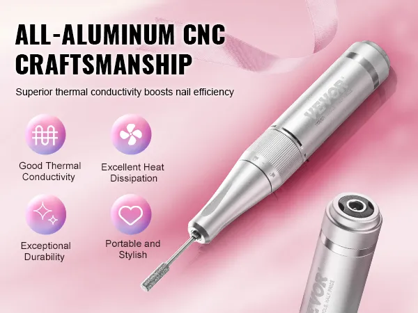 Premium CNC Aluminum Construction: Crafted from high-quality aluminum, our manicure pedicure tool ensures excellent durability and stability for prolonged use. Its excellent heat dissipation properties prevent overheating, ensuring a longer lifespan for your nail drill. Beauty meets durability, creating joyful nail care moments !