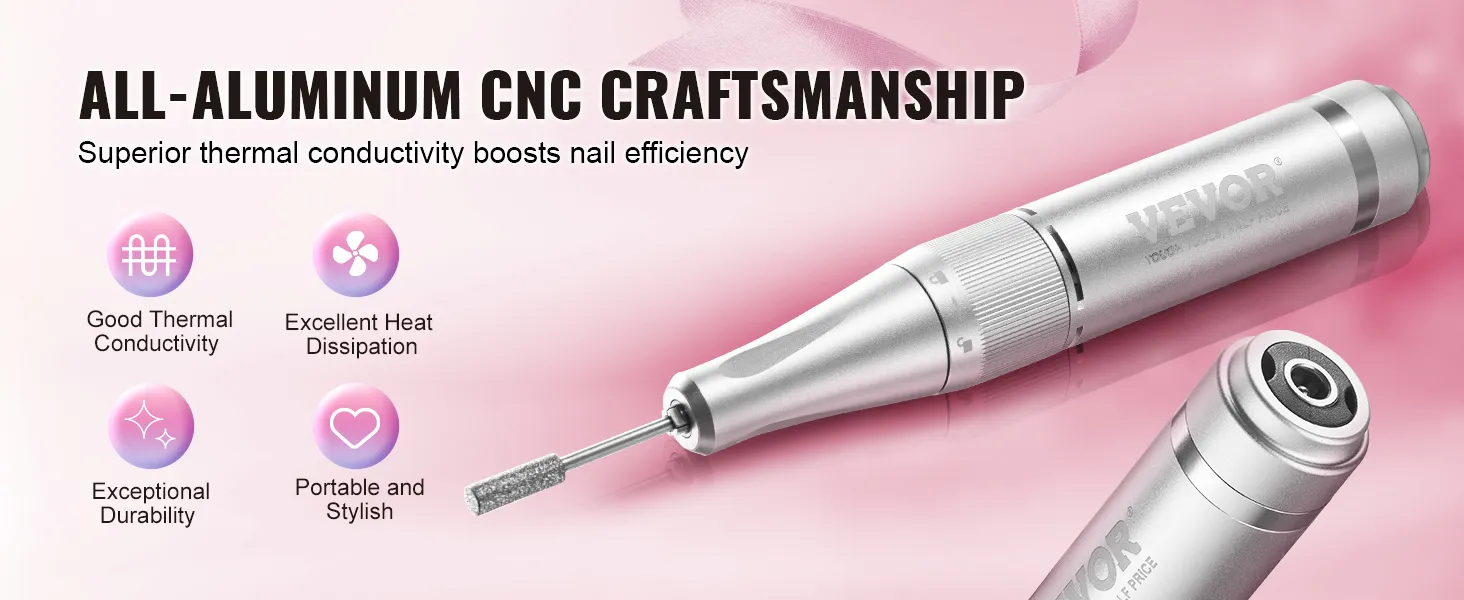 Crafted with precision using all-aluminum CNC craftsmanship, our manicure pedicure tool ensures superior thermal conductivity and heat dissipation , enhancing nail care efficiency. Strong and visually appealing, it serves as a long-term companion.