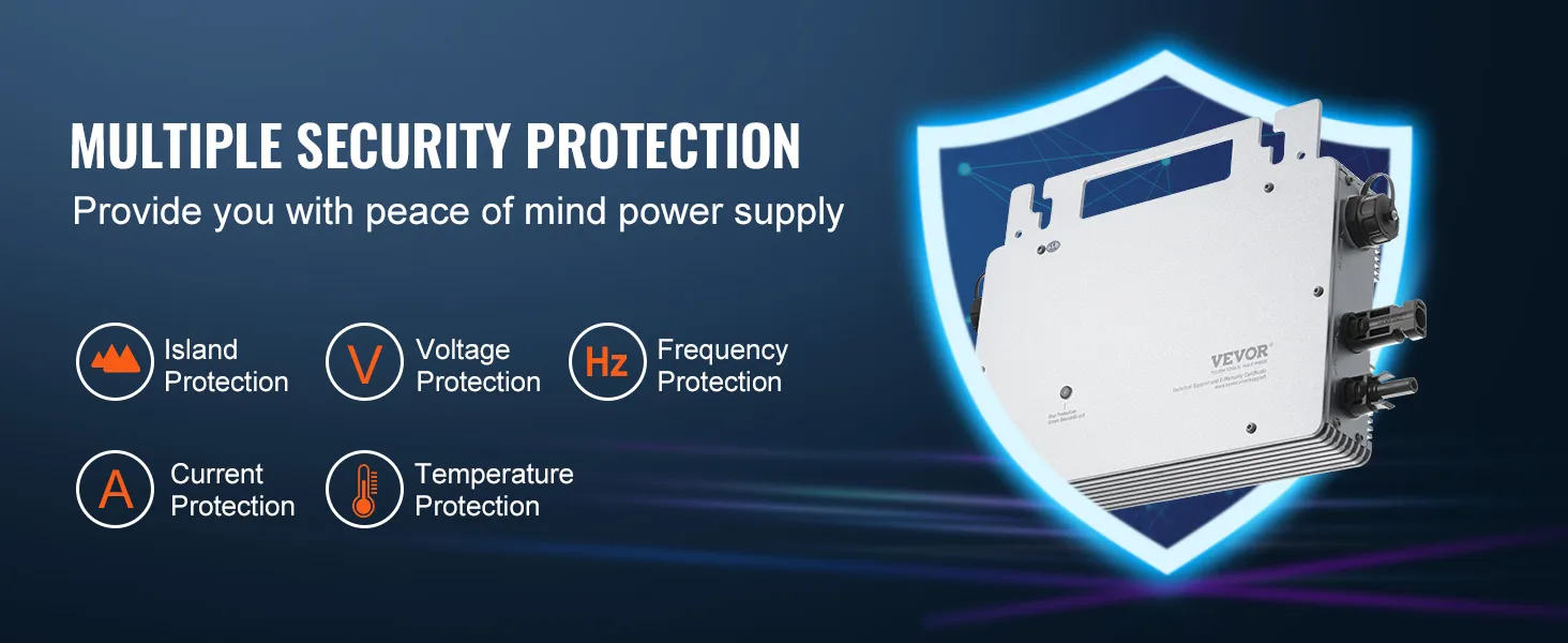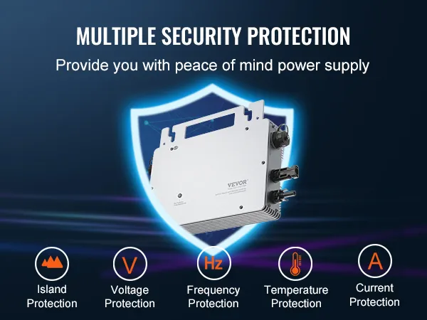 Onze micro-omvormer biedt eiland-, spannings-, frequentie-, temperatuur- en stroombescherming. Of u hem nu in particuliere, commerciële of agrarische omgevingen gebruikt, hij fungeert als betrouwbare bewaker van uw stroomvoorziening en zorgt te allen tijde voor stabiliteit en betrouwbaarheid.