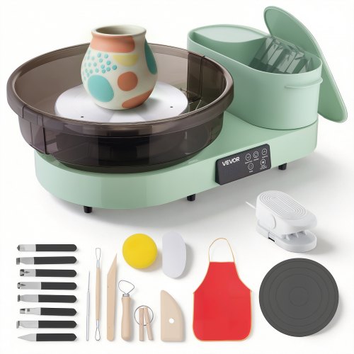 VEVOR elektrische pottenbakkersschijf 450W, draaiplateau 28cm/36cm, pottenbakkersmachine met voetpedaal en instelbare snelheid van 30-300 RPM en aluminium behuizing, voor beginners in doe-het-zelf kleikunst, groen