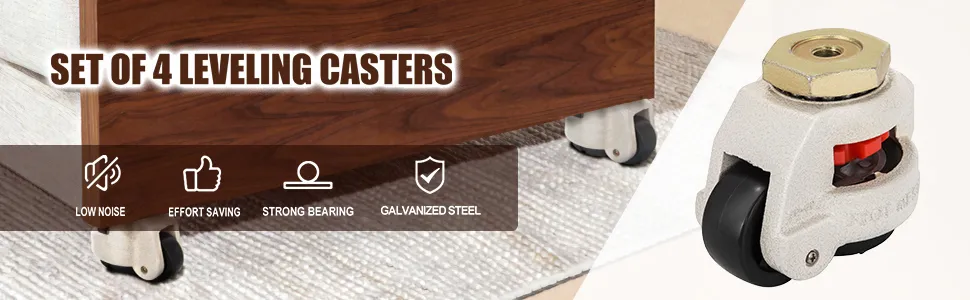 VEVOR 4-pack nivellerende zwenkwielen GD-80S, op de steel gemonteerde Footmaster nivellerende zwenkwielen, 0,5 ton per nivellerende zwenkwiel, nylon wiel en NBR-pad (GD-80S)