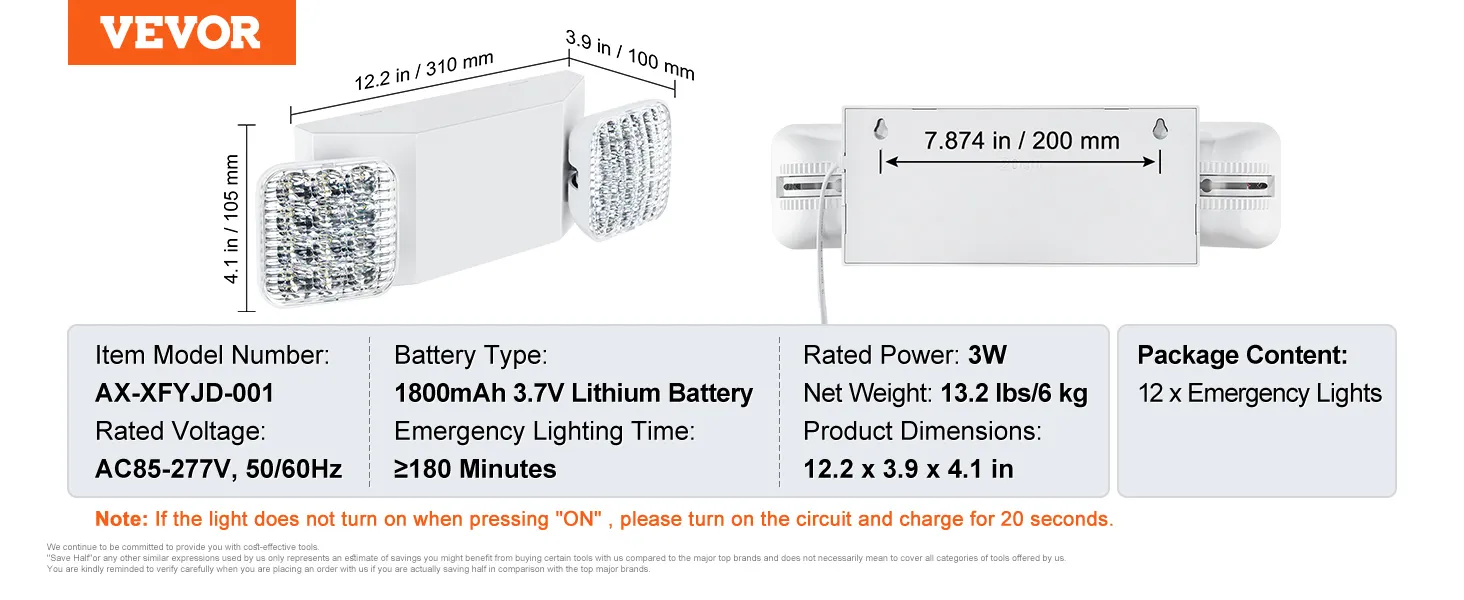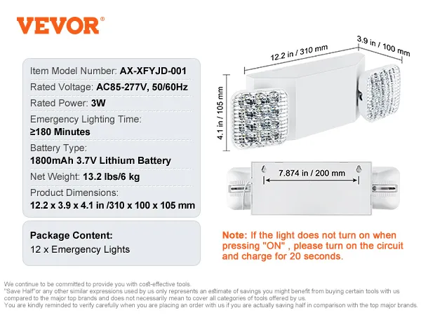 Shine Bright with LED Emergency Light: Light up any situation with our 3W dual-head LED emergency light fixture, each head boasting 12 LED chips for ample, uniform brightness. Whether it's a blackout, fire, dust storm, storm, or any emergency, it aids in secure and efficient evacuation for your team.