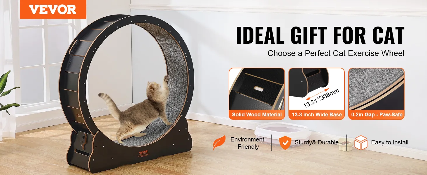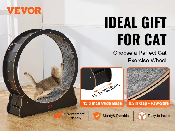 Met een ruime basis van 338 mm / 13,31 inch / 338 mm biedt hij uw kat een stabiele plek om te oefenen. Het unieke ontwerp met een speling van 5 mm zorgt voor veiligheid en zorgt ervoor dat uw katgenoot vrij in het wiel kan rennen.