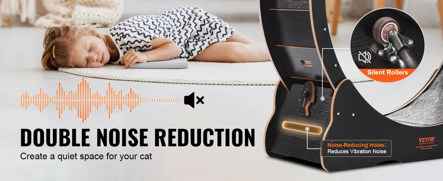 Onze kattenfiets is ontworpen met een stil wiel en geluidsreducerende gaten en kan het geluid met 10-20% verminderen, waardoor een stille en comfortabele trainingsomgeving voor uw huisdier ontstaat. Dit betekent dat u harmonieus kunt leven met uw huisdier en uw gezin.