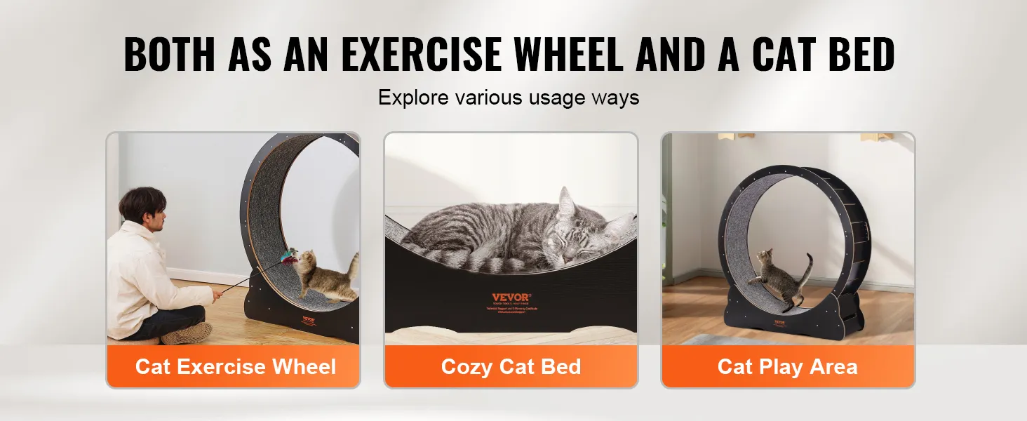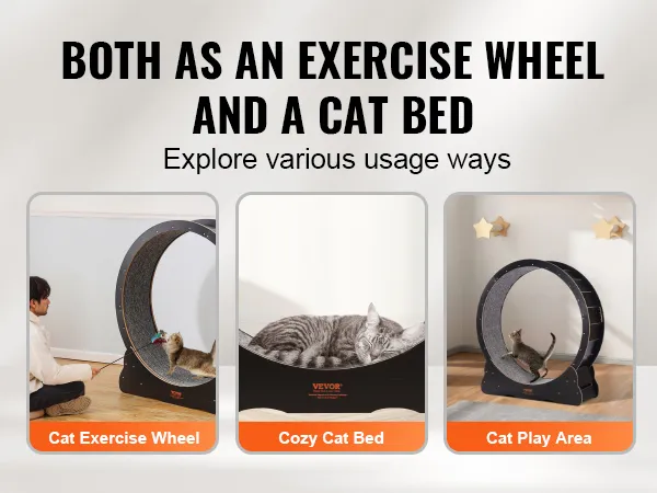 Veelzijdig kattenwiel: dit kattenwiel heeft een vergrendelingsmechanisme dat het stabiel houdt. Het kan worden gebruikt voor interactief kattenspel, als kattenrustplaats en als meubelstuk. Het kan in een stationaire modus worden gezet, zodat katten kunnen rennen en draaien, zodat ze kunnen klimmen en een dutje kunnen doen. Katten kunnen ook stoeien, jagen en zich vermaken!