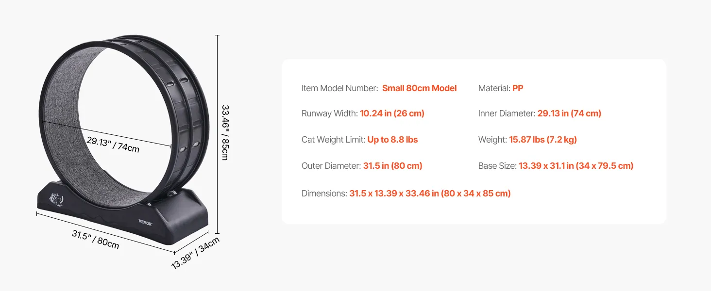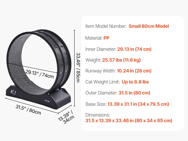 VEVOR Kattenloopwiel, 80 x 34 x 85 cm, Groot kattenloopwiel met veilige rem en tapijtenbaan, Stille werking, Kattenloopband, Kattenwiel voor gewichtsverlies en gezondheid, Zwart