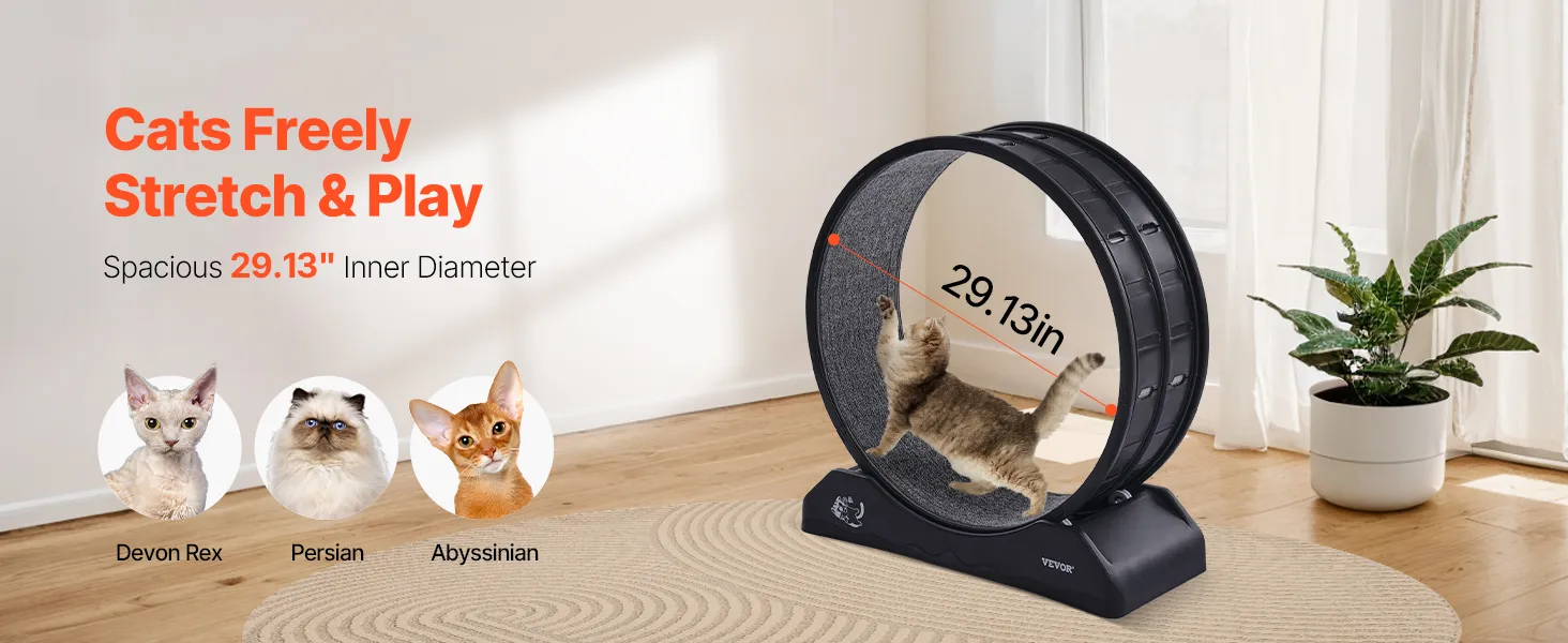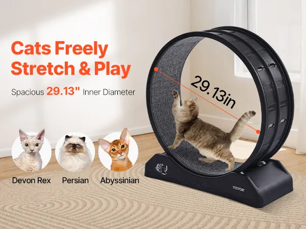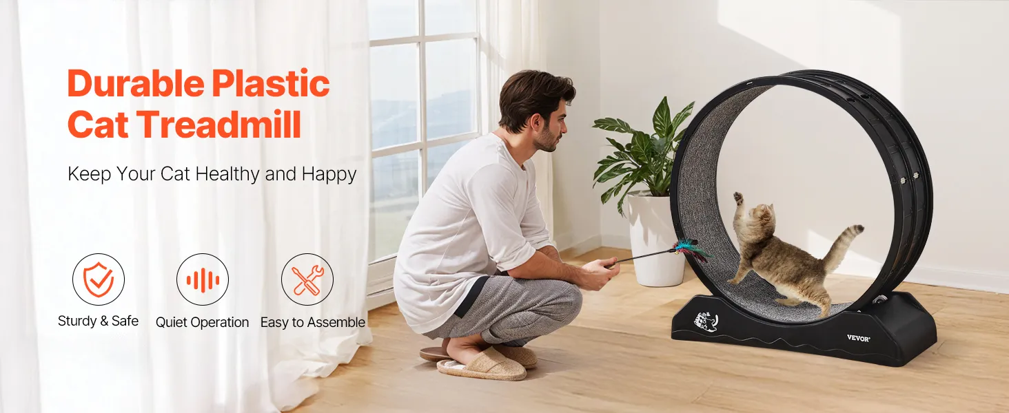 Deze stevige en toch lichtgewicht kattenloopband is voorzien van stille wielen voor comfortabel hardlopen. Het ruime interieur biedt plaats aan katten van elk formaat, terwijl de eenvoudig te reinigen materialen het onderhoud kinderspel maken.