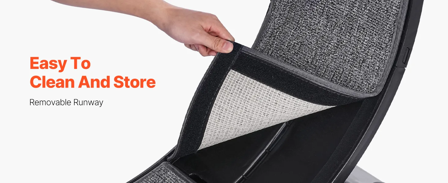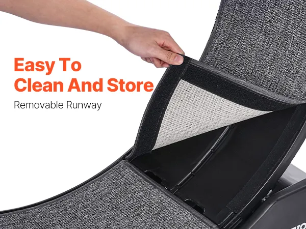 Eenvoudige installatie en opslag: Zeg vaarwel tegen ingewikkelde montage! Onze kattenhometrainer wordt geleverd met alle benodigde accessoires en eenvoudig te volgen instructies voor een snelle installatie, zodat u tijd kunt besparen en meteen aan de slag kunt. Dankzij het compacte ontwerp is hij gemakkelijk te verplaatsen of op te bergen wanneer hij niet in gebruik is. Bovendien is de verwijderbare loopmat eenvoudig schoon te maken, waardoor uw loopband schoon en klaar voor gebruik blijft.