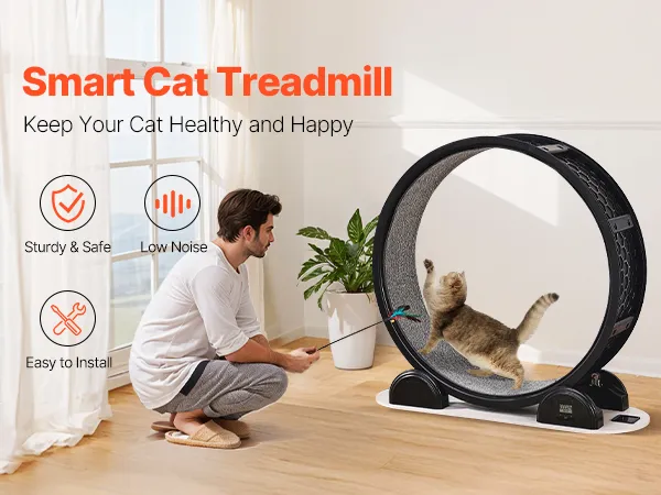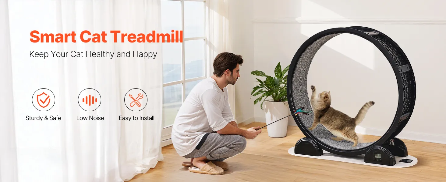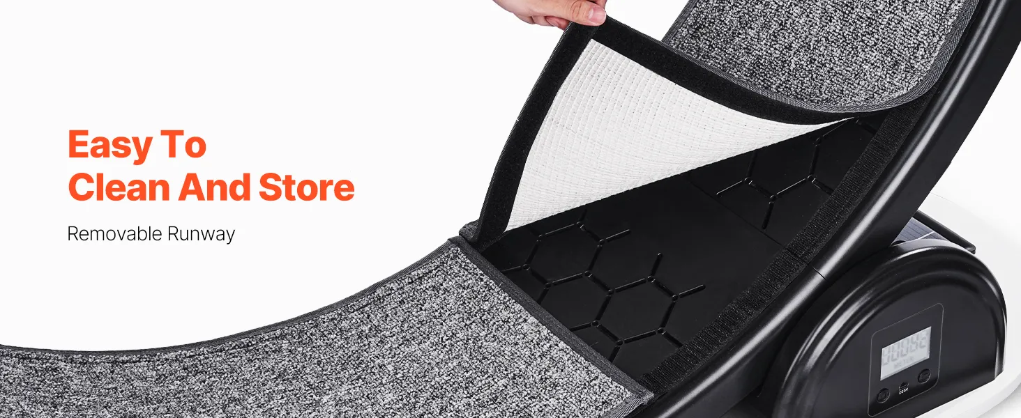Quick Setup & Space-Saving Design: Assembly is a breeze with the included tools and straightforward instructions, so you can get your kitty exercising in no time! Its compact design makes it easy to move and store, ideal for any home. Plus, the removable running mat ensures hassle-free cleaning.