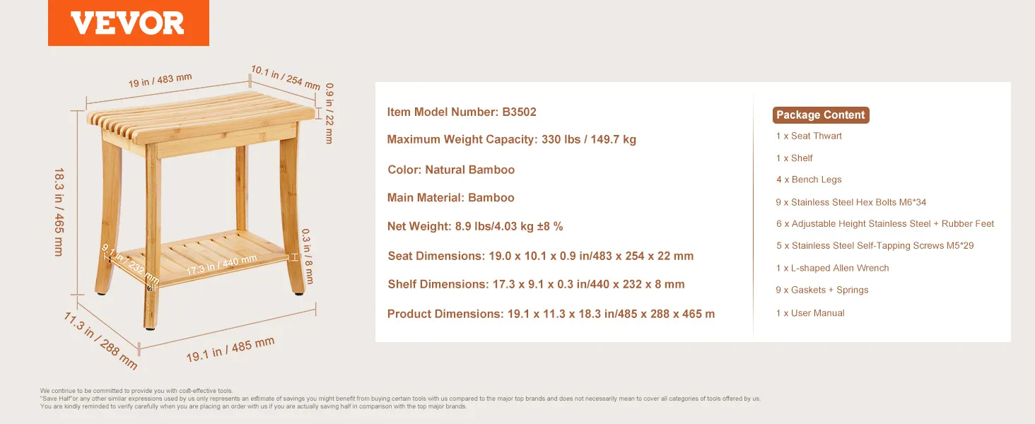 Onze waterdichte bamboe douchebank is precies wat u zoekt. Dankzij de robuuste tweelaagse constructie is hij belastbaar tot 150 kg. Hij kan gebruikt worden als bijzettafel of schoenenrek en past perfect in de badkamer, woonkamer en slaapkamer.