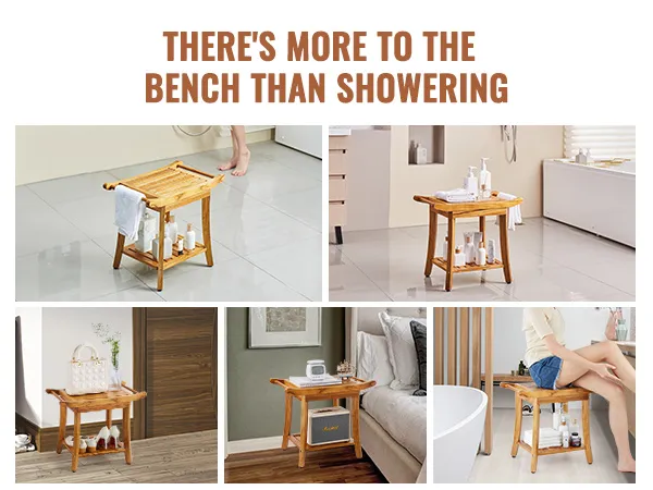 Multi-functional Storage Made Easy: This elegantly designed shower seat fits seamlessly in entryways, gardens, balconies, terraces, and living rooms, blending effortlessly with various decor styles. It serves as a multifunctional seat and storage shelf, perfect for bathroom seating, shaving benches, bathtub racks, shoe-changing stools, and more. Ideal for organizing toiletries, linens, planters, magazines, and beyond.
