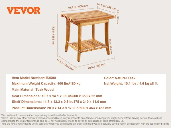 Looking for a bathroom organizer or a reliable shower seat? Look no further than this waterproof teak wood shower bench. Stronger than bamboo, it is built tough to hold up to 400 lbs with dual-layer construction. It can be used as a side table or shoe rack and fits the bathroom and living room.