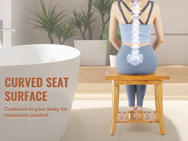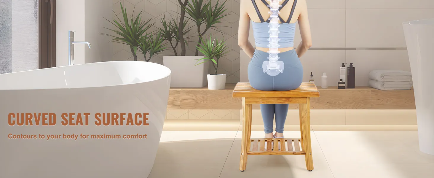 Durable Teak Wood, Built to Last: Our shower bench is crafted from 100% solid teak wood, renowned for its superior hardness compared to bamboo, standing strong and resilient whether indoors or outdoors. Infused with natural oils and coated with a waterproof finish, it ensures efficient drainage and quick drying, minimizing mold risks in humid environments like your shower. Experience the unmatched durability of our shower stool!