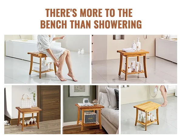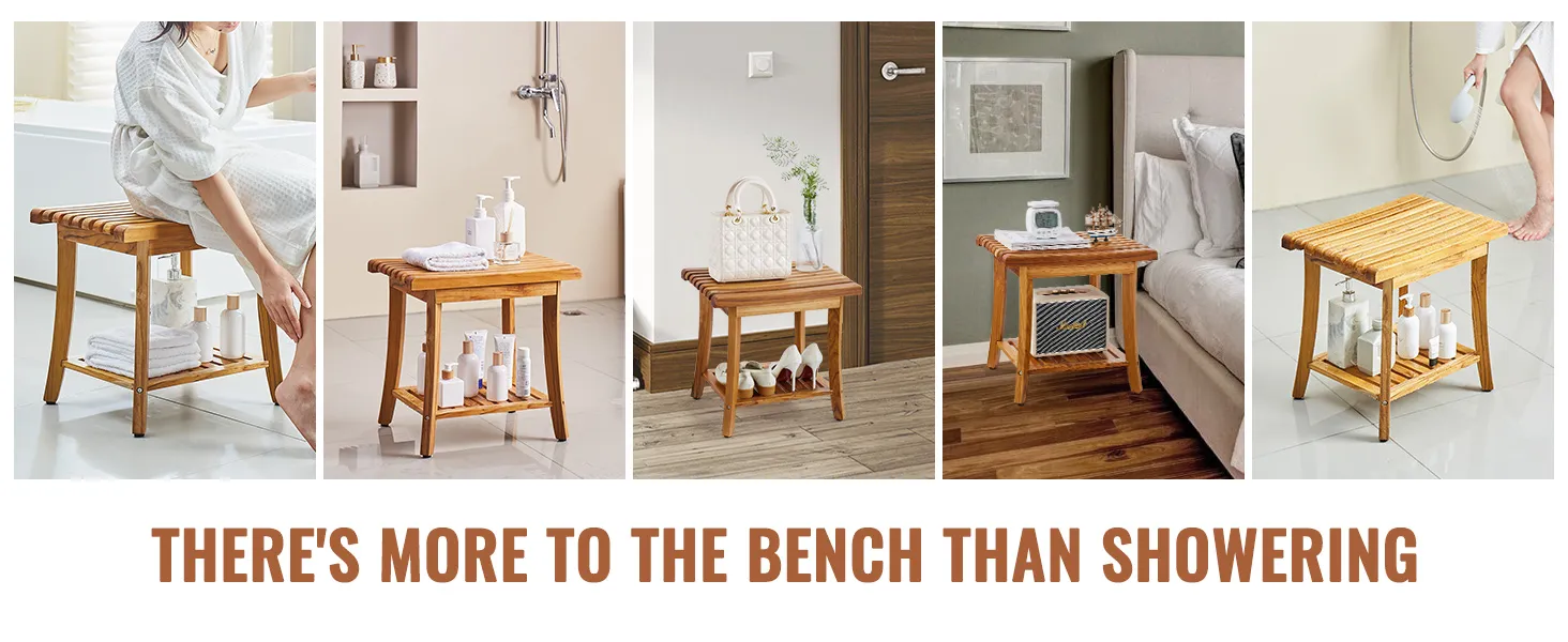 Multi-functional Storage Made Easy: This elegantly designed shower seat fits seamlessly in entryways, gardens, balconies, terraces, and living rooms, blending effortlessly with various decor styles. It serves as a multifunctional seat and storage shelf, perfect for bathroom seating, shaving benches, bathtub racks, shoe-changing stools, and more. Ideal for organizing toiletries, linens, planters, magazines, and beyond.