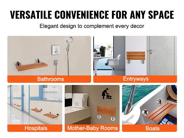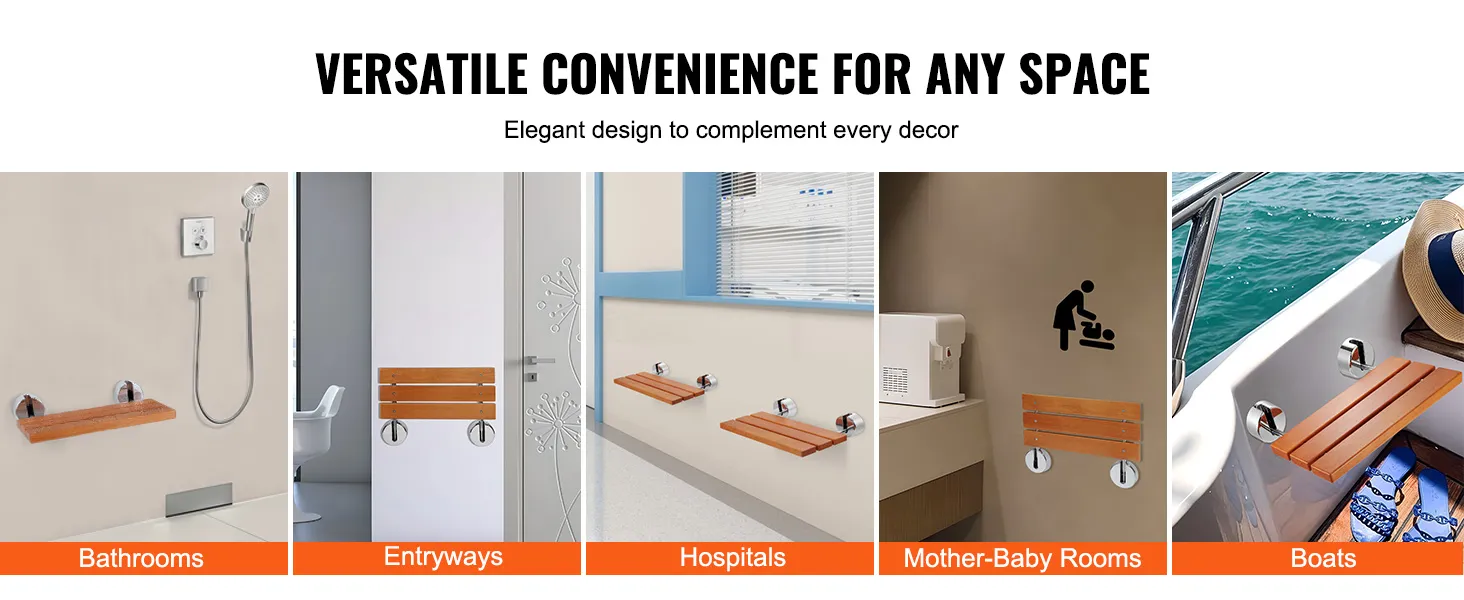From Bathrooms to Showers, and Beyond: Our wall-mounted shower seat isn't limited to just bathrooms and shower areas – it's also perfect for doorways, bedrooms, hospitals, nurseries, corridors, dressing rooms, boats, and more. Its sleek and minimalist design effortlessly blends into various decor styles, adding both functionality and aesthetic appeal wherever it's placed.