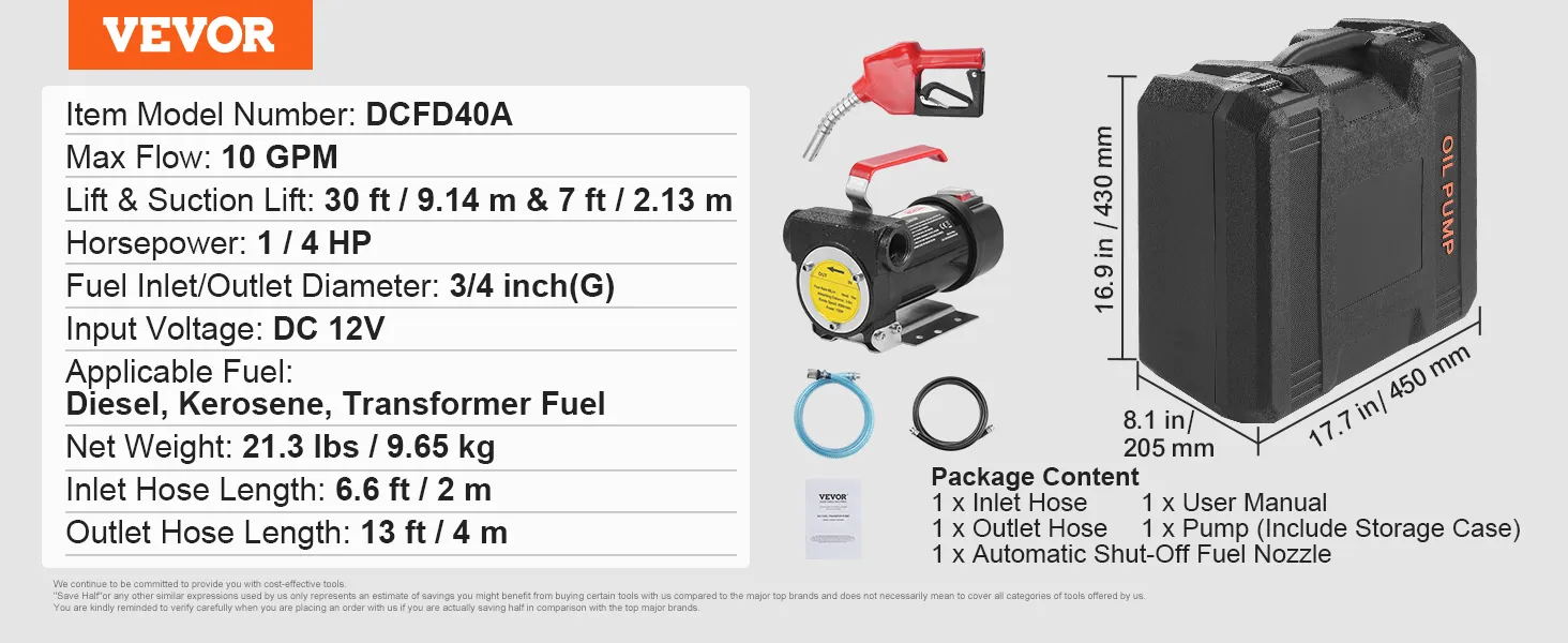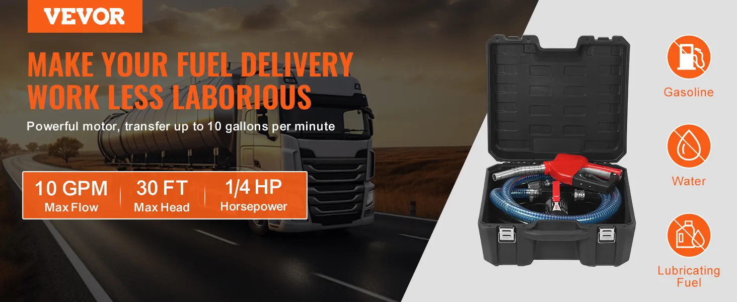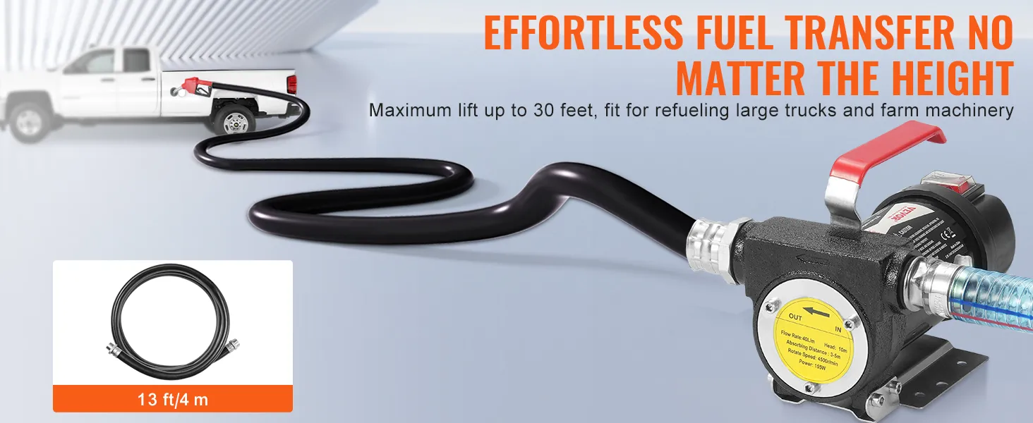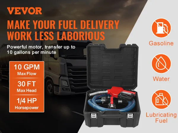 Deze brandstofoverdrachtpomp is ontworpen met een hoog debiet van 10 GPM en wordt aangedreven door een hoge snelheidsmotor van 4600 tpm die een vat diesel van 55 gallon zo snel mogelijk in minder dan 6 minuten kan pompen. Het kan je een goede tankervaring geven.