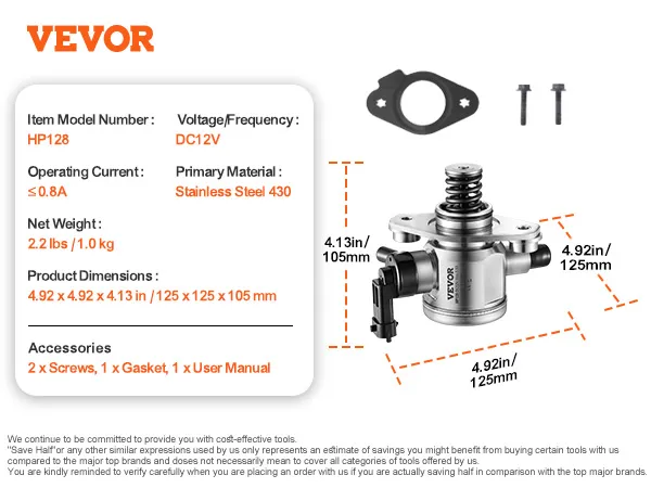 Durable & Wear-Resistant: Made from high-strength stainless steel with precision engineering, the fuel pump replacement is resistant to wear, corrosion, leaks, and high temperatures, significantly extending its service life.