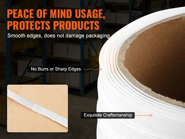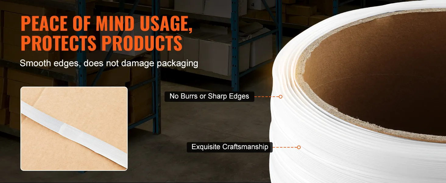 Veilig in gebruik: Geniet van de veiligheid van onze omsnoeringsrol met gladde randen en geen scherpe punten. Dit maakt het zacht voor zowel uw verpakking als uw handen. Voor extra veiligheid is het dragen van verpakkingshandschoenen een goed idee om ongelukken veroorzaakt door onjuiste hantering te voorkomen.