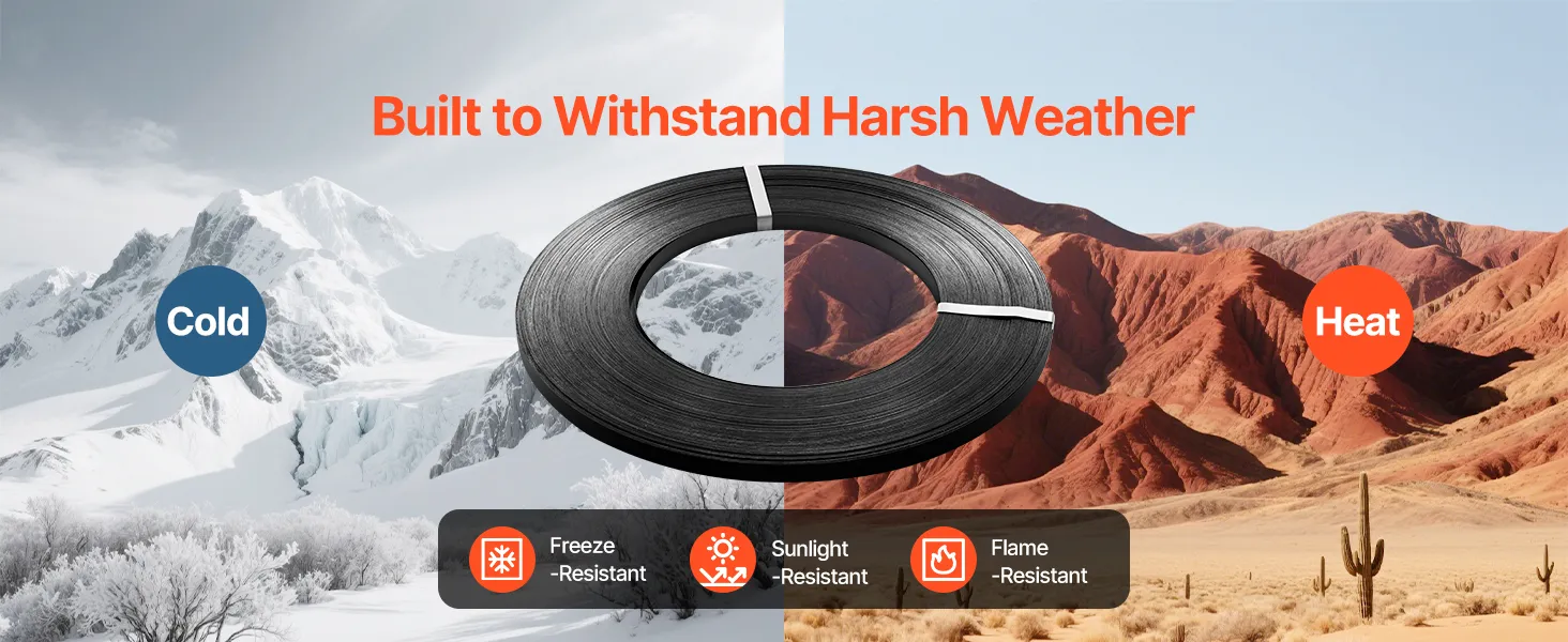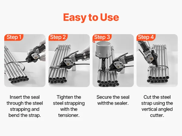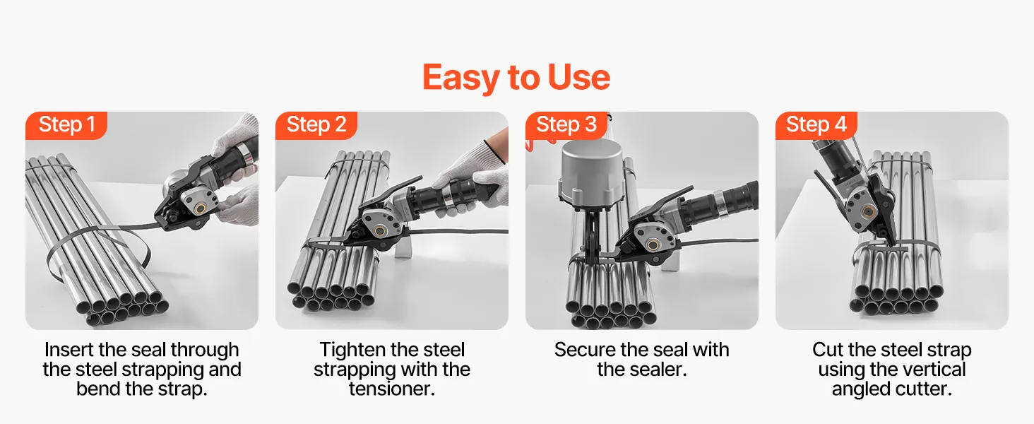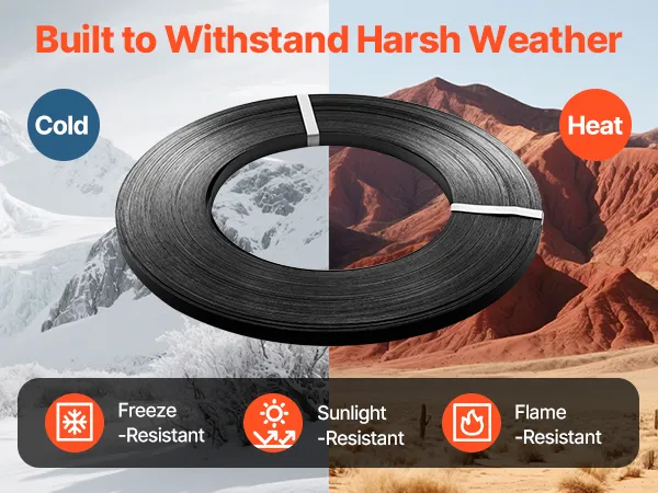 Zeer sterke stalen omsnoeringsband met een glad oppervlak en veilige randen om handblessures te verminderen en de veiligheid bij het omsnoeren te verbeteren (het gebruik van handschoenen wordt aanbevolen).