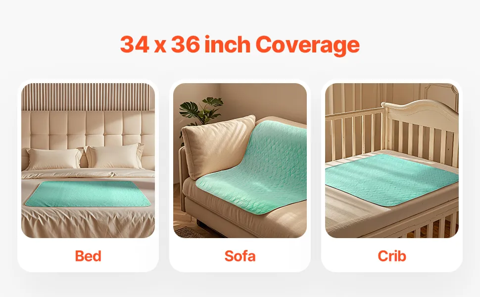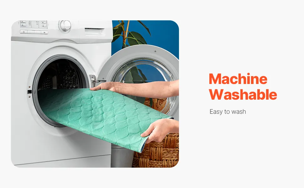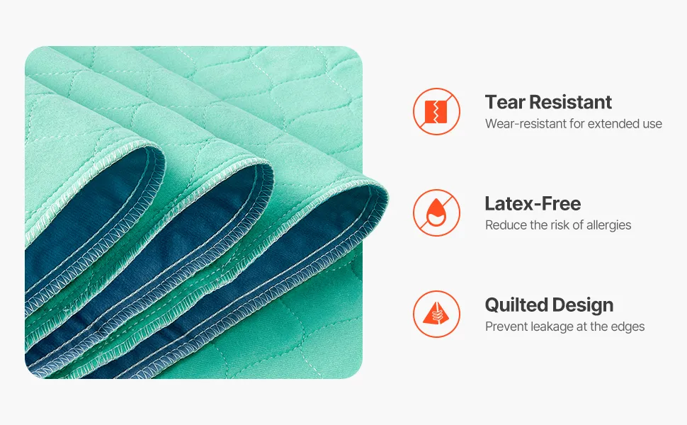 Deze herbruikbare bedmatras van latexvrije materialen biedt een veilige, comfortabele ervaring en een lager risico op allergieën. Het gewatteerde ontwerp houdt vloeistoffen vast en voorkomt lekken langs de randen. Het biedt duurzaamheid en scheurbestendigheid voor langdurig gebruik.