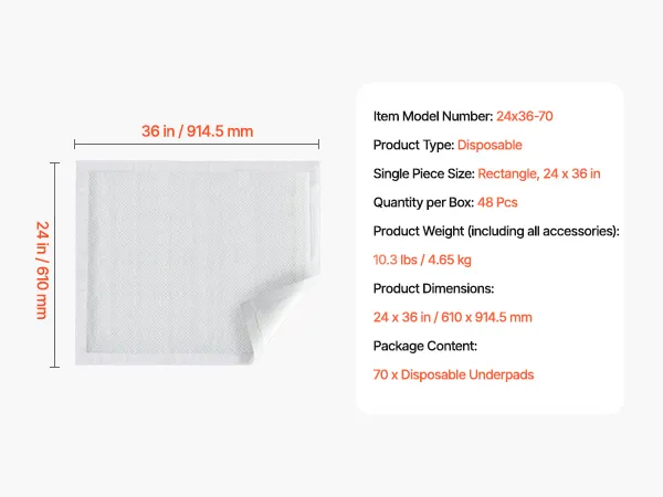 Keep dry and comfortable with our 24" x 36" disposable underpads. Featuring 5-layer protection structure, these bed pads are super absorbent and quickly lock in liquids, keeping beds, sofas, and mattresses dry. Ideal for babies, elderly, adults, and pet - simply use and dispose for easy cleanup.