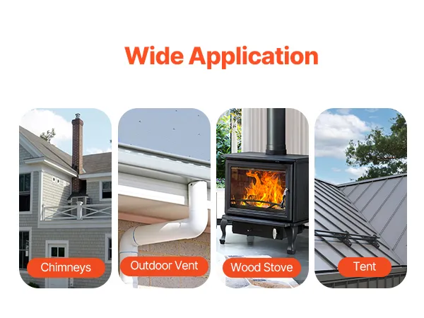 With the high adaptability and good sealing of our high temp flexible pipe boot, the roofing vent pipe boot can be widely used in chimneys, exhaust ports, wood stoves, pipe openings, tent pipe, and so on!