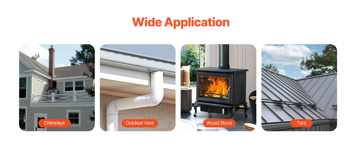 Wide Application, Outstanding Value for the Price: This flashing boot is suitable for roofs made of metal, wood, and other materials. It is also widely used for chimneys, vents, wood stoves, pipe openings, and tent pipes, offering versatile and reliable protection. Note: Do not use consistently in applications exceeding the temperature range. High-quality sealant is recommended to avoid aging or cracking, which could lead to water leaks.