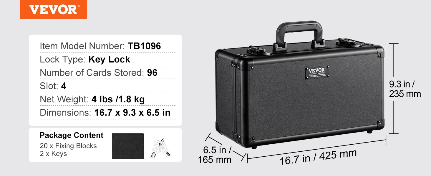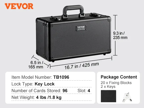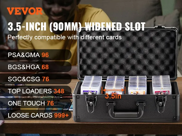 Introducing our graded card case features a 3.5 in/90 mm widened card slot and 20 flexible foam inserts, accommodates up to 96 PSA graded cards, and is compatible with PSA, BGS, SGC, and TOP LOADERS. The lock mechanism, accompanied by 2 keys, safeguard your cards with peace of mind!