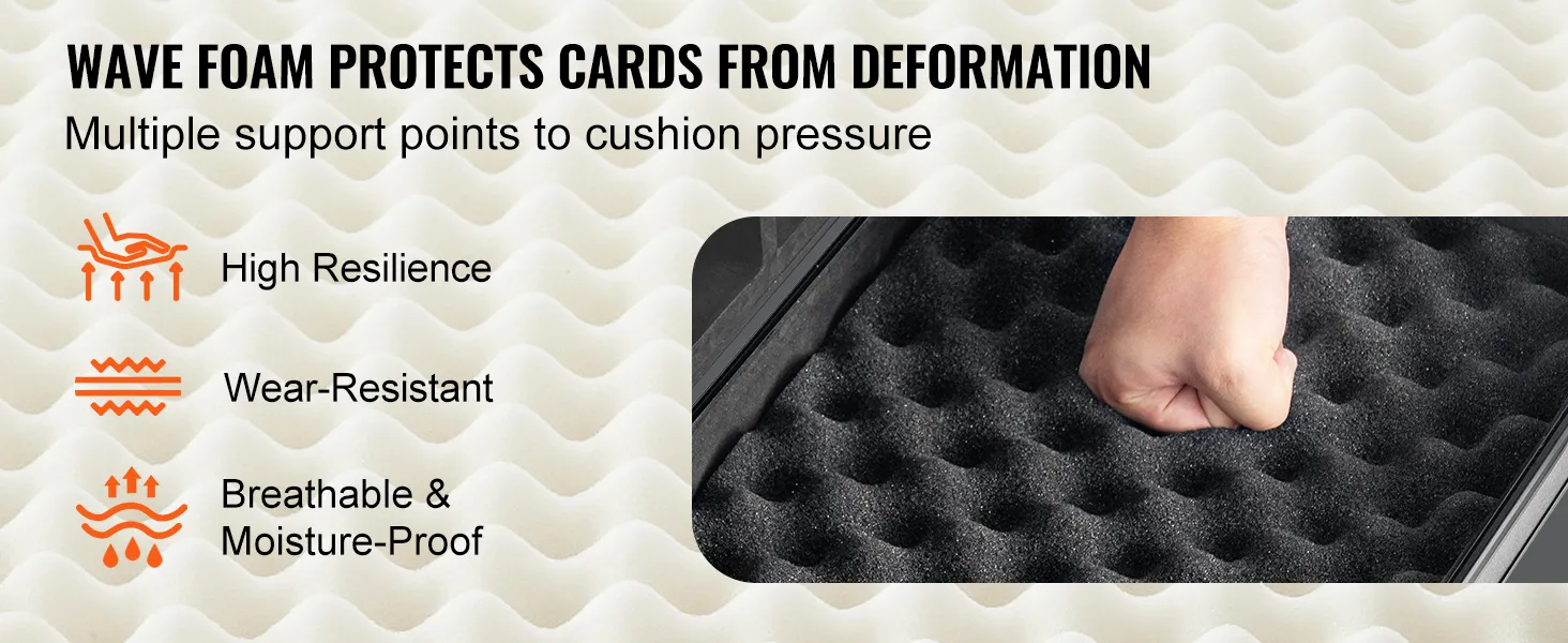 The wave foam on the top of our graded card case offers multiple support points to cushion against pressure, ensuring cards resist deformation and wear. The high-resilience foam is breathable and moisture-resistant, keeping your cards in their original pristine condition.