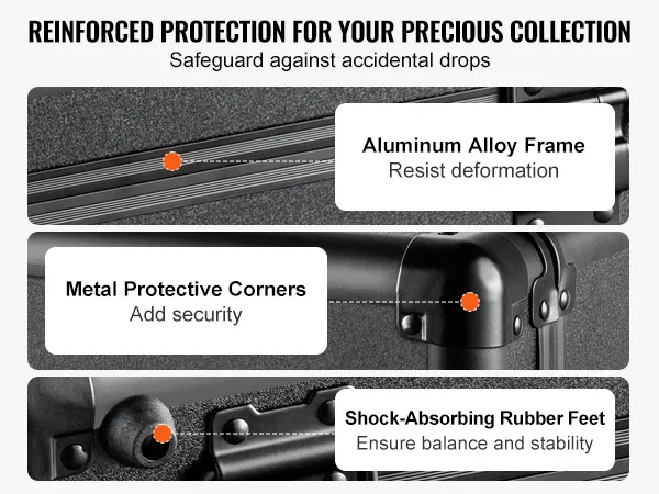 Durable Shell, Built to Last: Our PSA card holder case is crafted with an aluminum frame and reinforced metal corners, designed to withstand frequent use and tough conditions. The shock-absorbing rubber feet provide stability and cushion against impacts, ensuring your cards stay protected even during accidental drops or collisions.