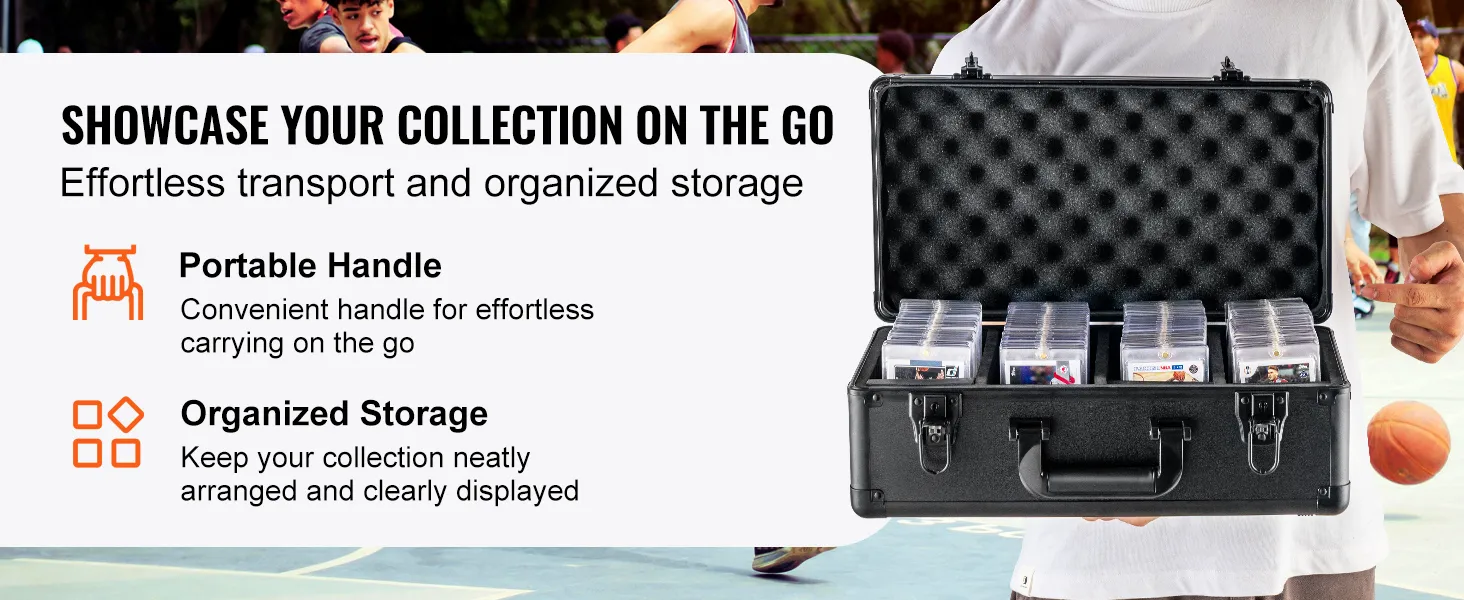 Our graded sports card storage box weighs similar to a laptop, making it effortless to carry to exhibitions and events with its top handle for a comfortable grip. The organized compartments ensure your cards are neatly arranged for clear display, allowing you to showcase your collection with ease.