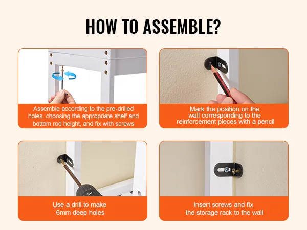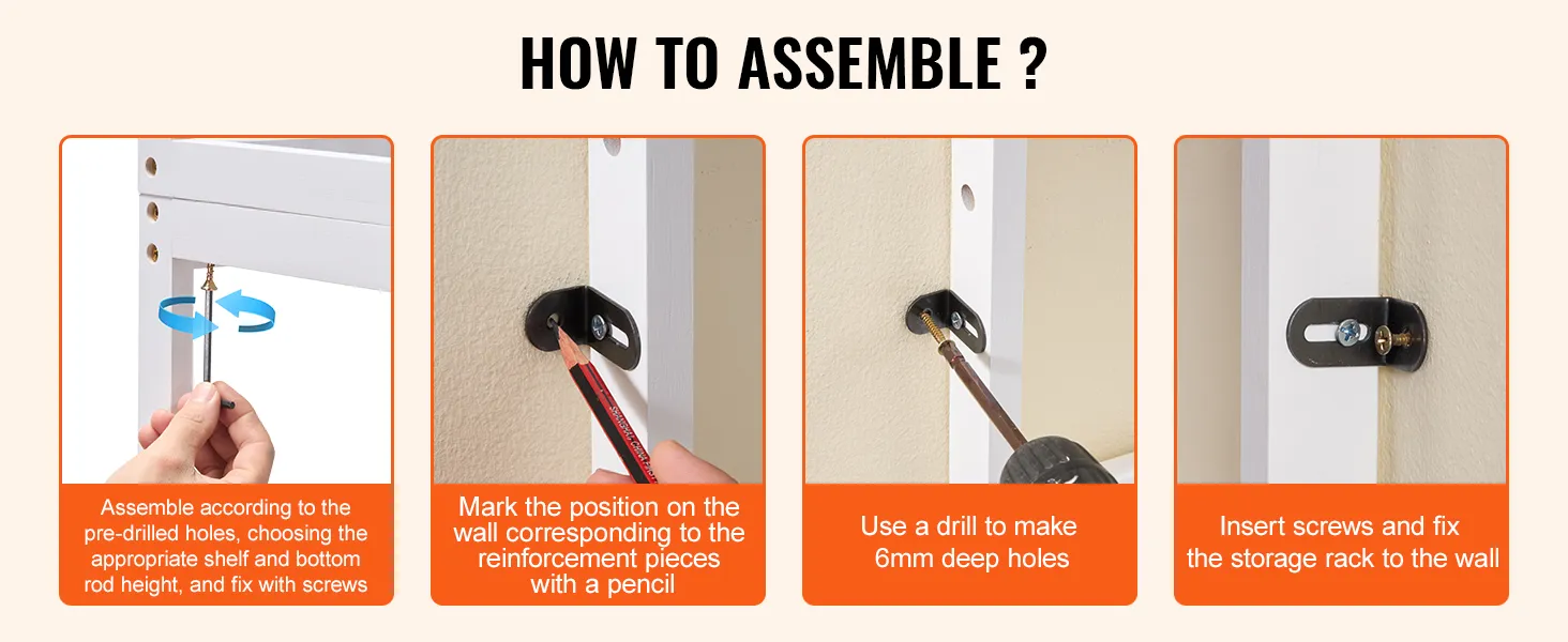 Eenvoudig te monteren: Ook als u niet handig bent, kunt u dit badkamertoiletframe eenvoudig monteren en opstellen. Monteer eerst het totale frame, pas vervolgens de positie van de middelste plank en de onderste stang aan volgens de vooraf ingestelde gaten en bevestig ten slotte de verstevigingen aan de muur. Onze duidelijke instructies en meegeleverde gereedschappen maken het montageproces veel eenvoudiger.