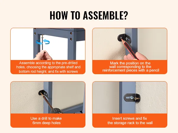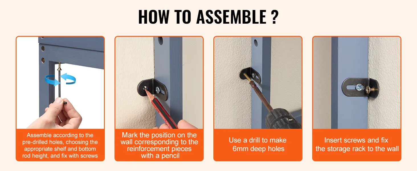 Eenvoudig te monteren: Ook als u niet handig bent, kunt u dit badkamertoiletframe eenvoudig monteren en opstellen. Monteer eerst het totale frame, pas vervolgens de positie van de middelste plank en de onderste stang aan volgens de vooraf ingestelde gaten en bevestig ten slotte de verstevigingen aan de muur. Onze duidelijke instructies en meegeleverde gereedschappen maken het montageproces veel eenvoudiger.