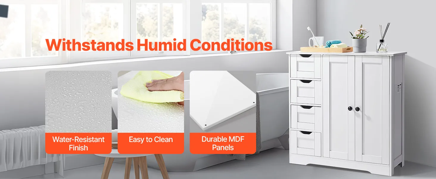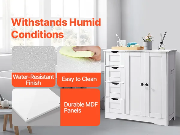 Waterdicht en makkelijk schoon te maken: Deze witte opbergkast van hoogwaardig MDF met een waterdichte coating is vochtbestendig. Hij is gemakkelijk schoon te maken en ideaal voor badkamers en keukens.