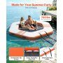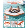 Het opblaasbare drijvende platform, met afmetingen van 2,6 x 2,6 m, biedt plaats aan 3-5 personen en kan een gewicht tot 318 kg dragen. Het is ideaal als zwemplatform, drijvend vlot of loungeplek in het water.
