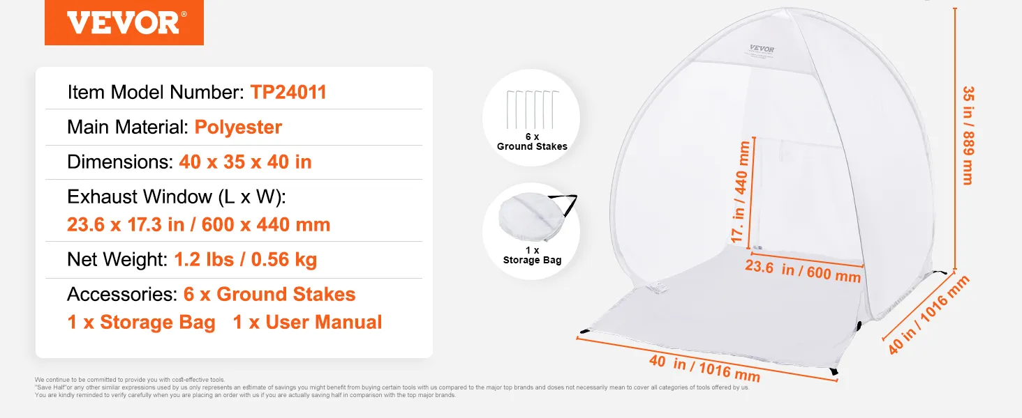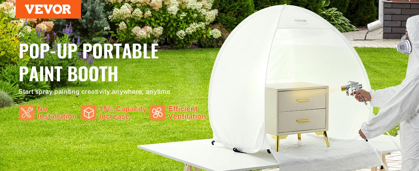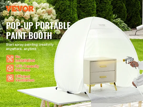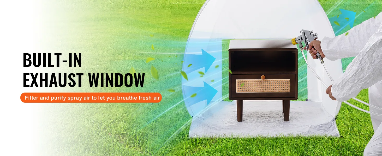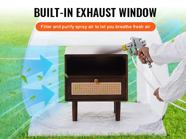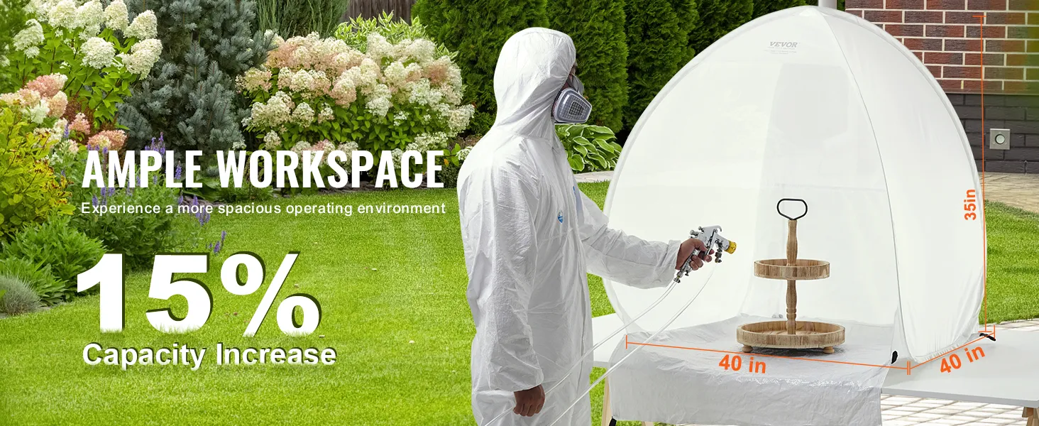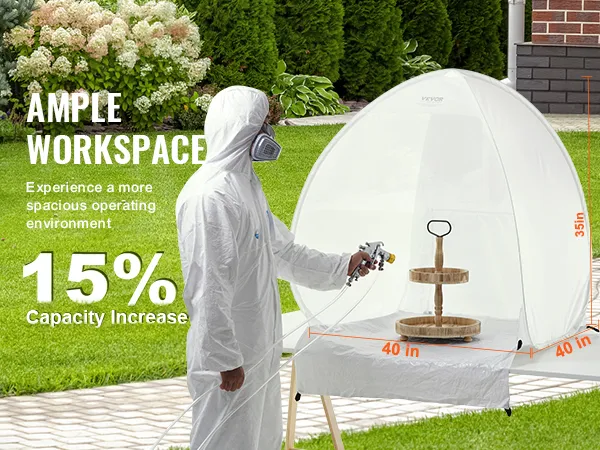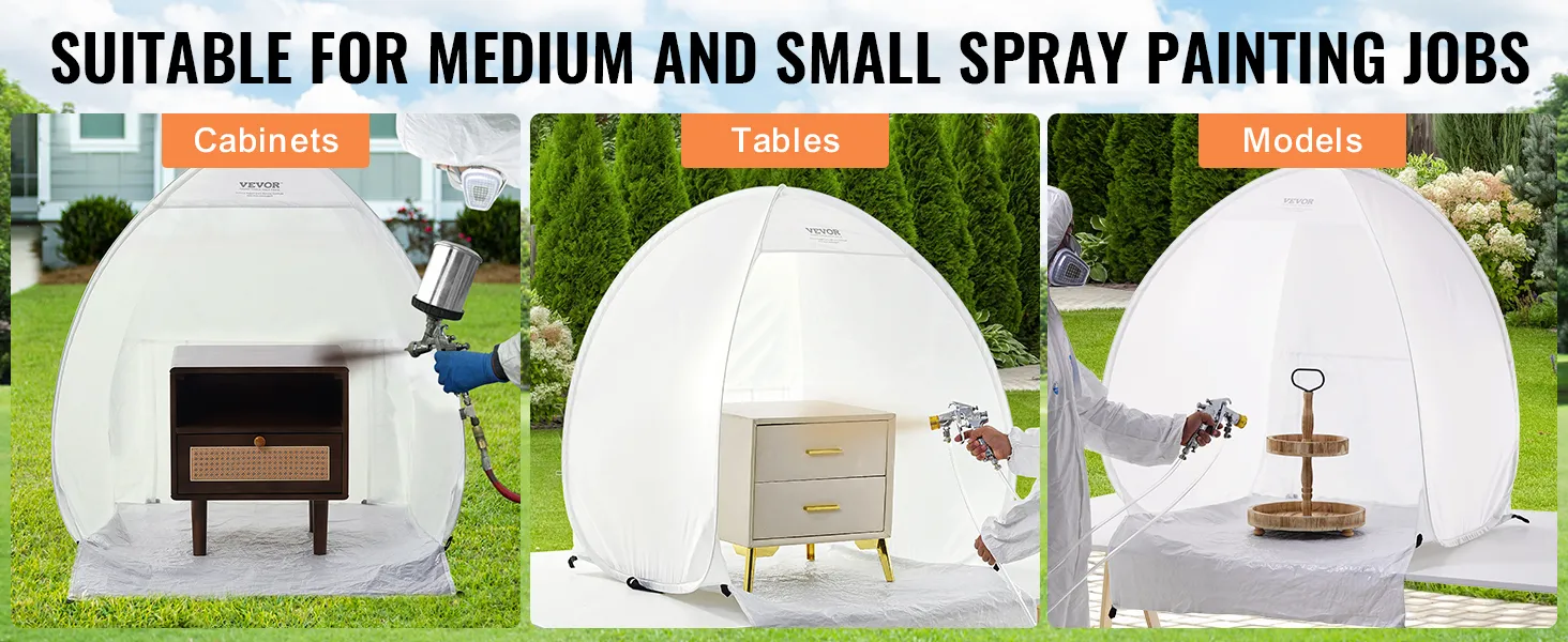 Wide Applicability: The compact yet spacious interior of the spray shelter is perfect for medium to small-sized furniture, crafts, and various parts. Use this paint tent in the garage, on the lawn, patio, or indoors.