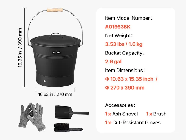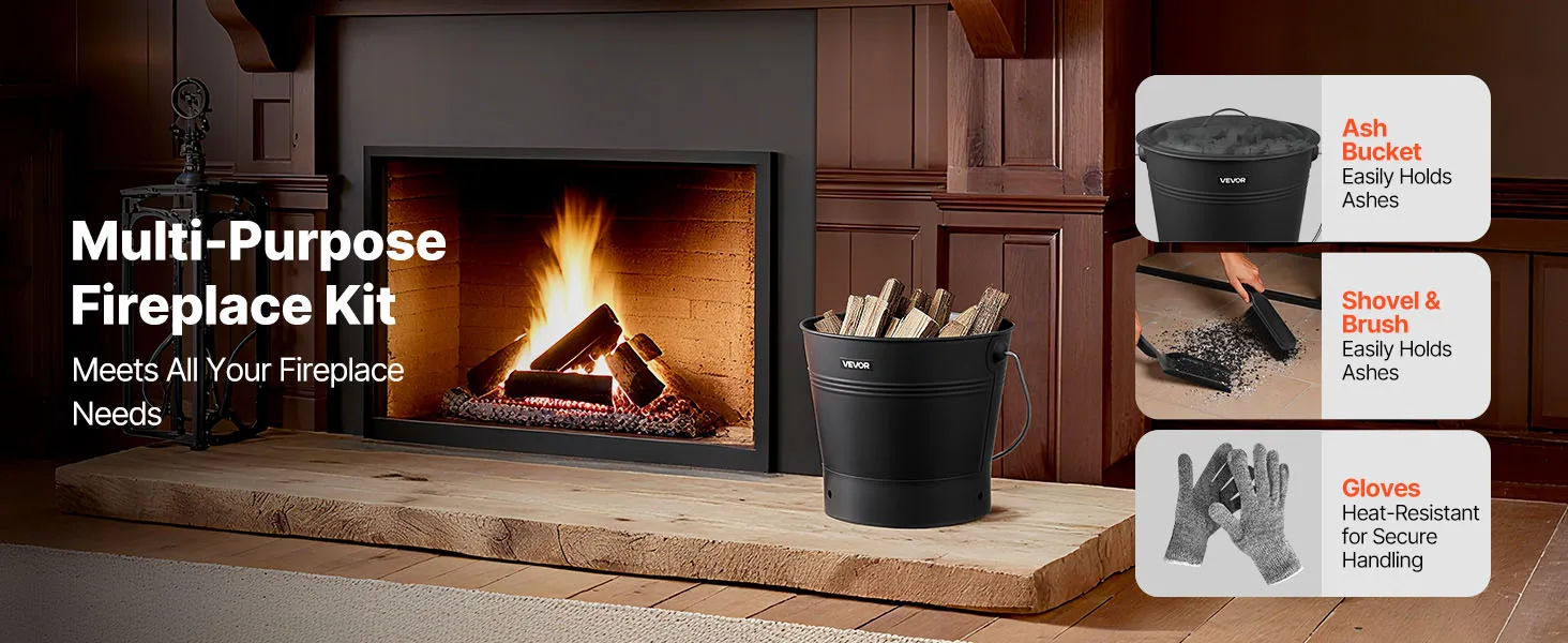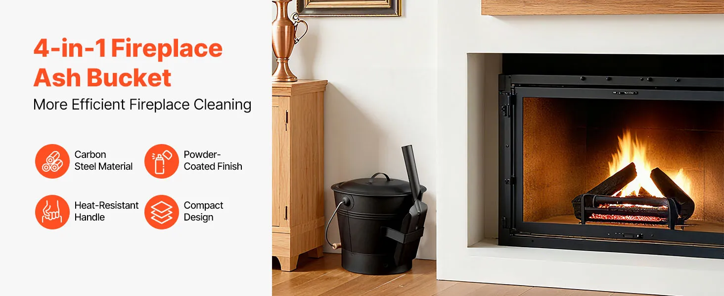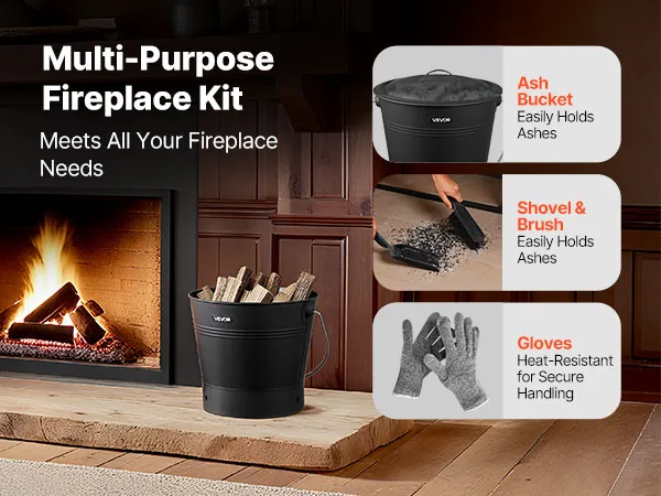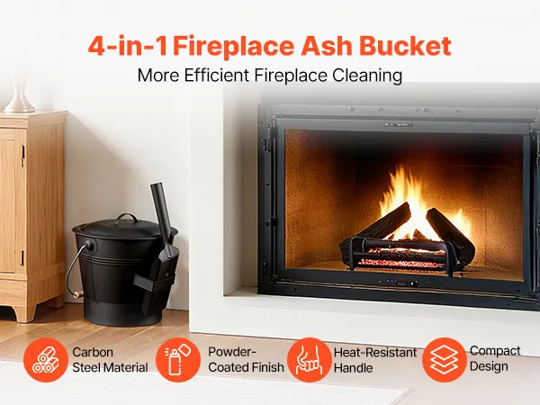 4-in-1 asemmer voor de open haard: Deze asemmerset bevat een asemmer met deksel, een asschep, een borstel en handschoenen. Dit maakt het verwijderen van as uit de open haard en het bijvullen ervan eenvoudiger. Alle onderdelen werken samen om het schoonmaken van de open haard efficiënter en gemakkelijker te maken.