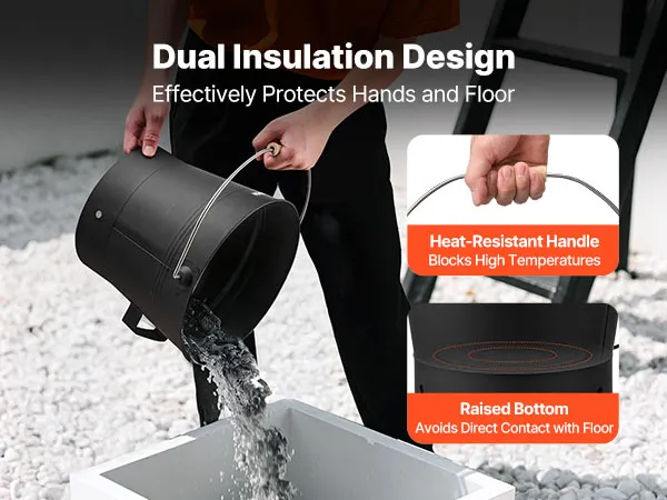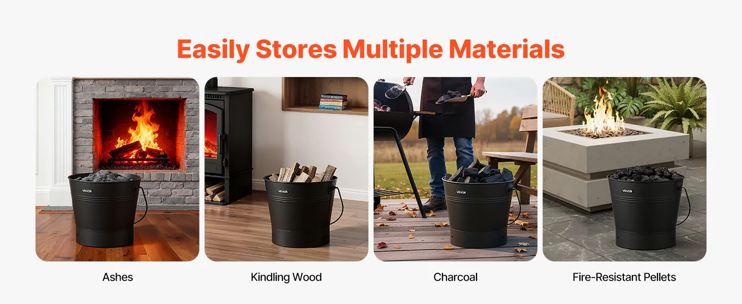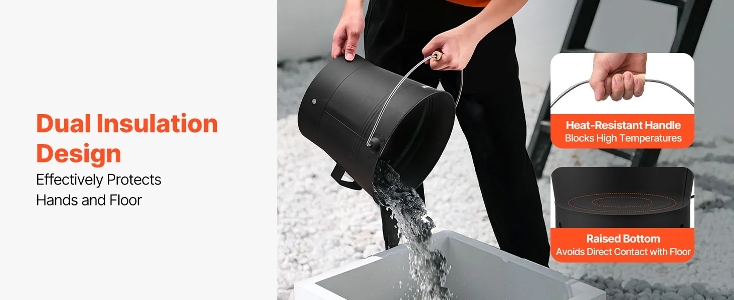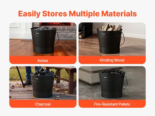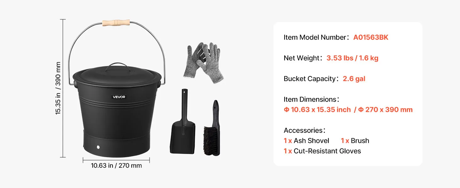 Grote capaciteit: Deze asemmer met deksel heeft een ruime inhoud van 9,8 liter (2,6 gallon). De brede opening maakt snel en eenvoudig vullen met voldoende brandstof en as mogelijk, en voorkomt morsen tijdens het schenken.