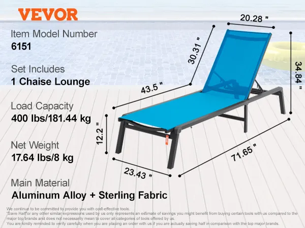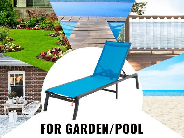 Onze aluminium loungestoel is perfect voor uw terras, tuin, zwembad, strand, balkon en meer. Begin vandaag nog met uw ontspannende buitenervaring en maak blijvende herinneringen met familie en vrienden. De VEVOR chaise loungestoel is uw sleutel tot een comfortabele en stijlvolle levensstijl buitenshuis.