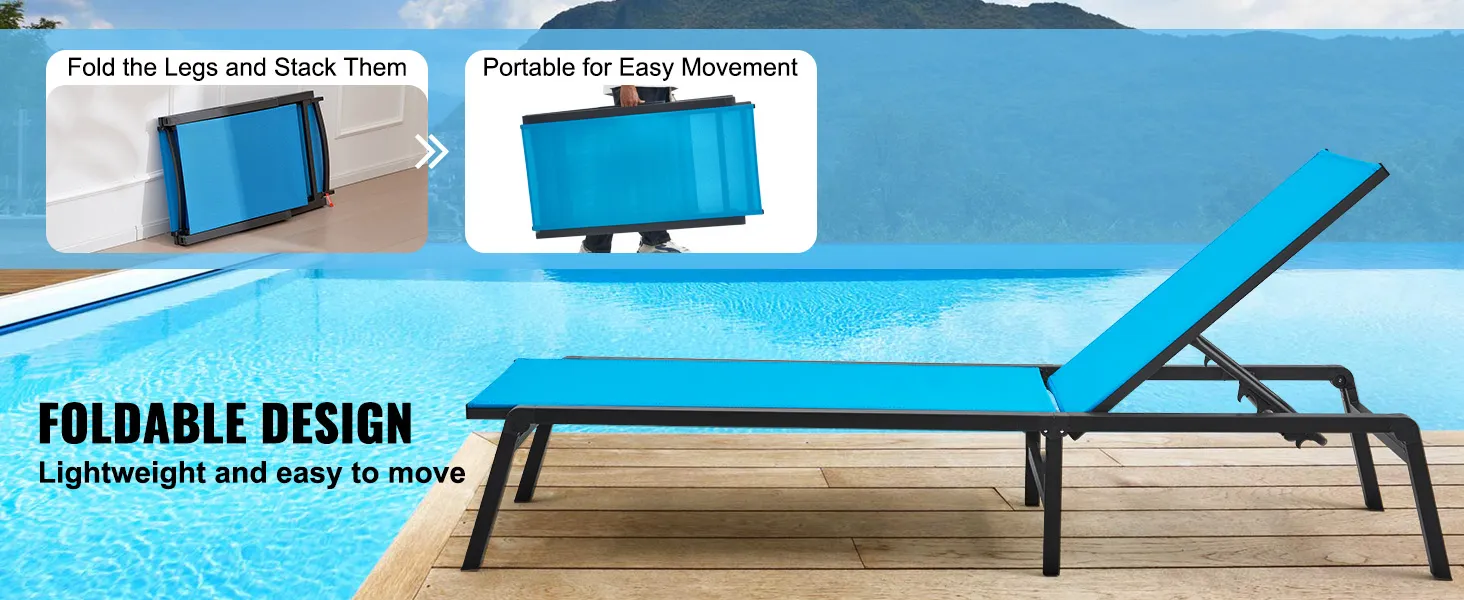 De VEVOR 5-positie loungestoel is niet alleen duurzaam, maar ook lichtgewicht, dankzij het aluminium frame. Dit maakt het verplaatsen in uw buitenruimte of het vervoeren naar verschillende locaties eenvoudig. Het opvouwbare ontwerp zorgt voor minimale opbergruimte wanneer het niet in gebruik is, ideaal voor mensen met beperkte ruimte.