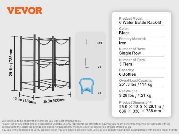 Heavy-Duty Cast Iron: Made from thick cast iron with a powder-coated finish, this water bottle rack is stylish and highly durable. It resists corrosion, rust, and water damage, ensuring long-lasting use.
