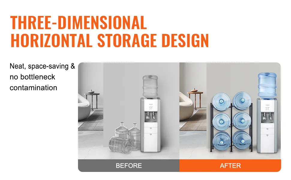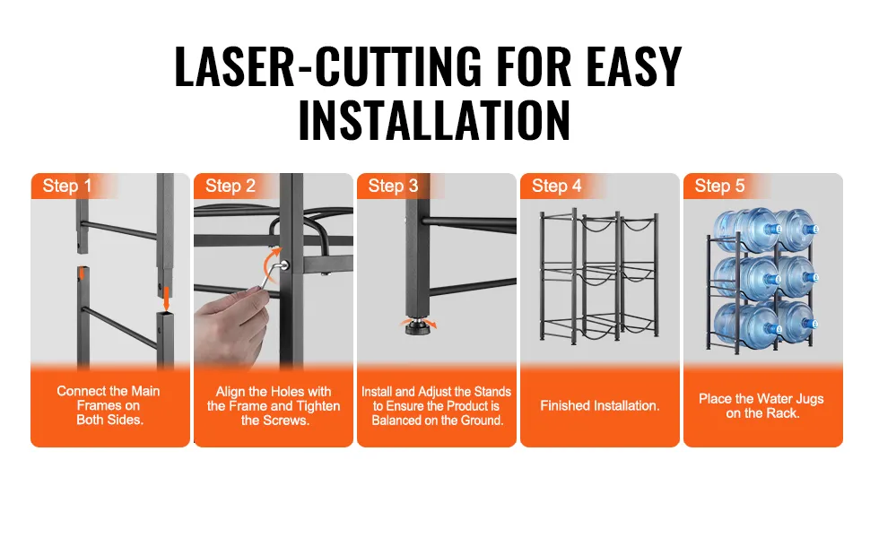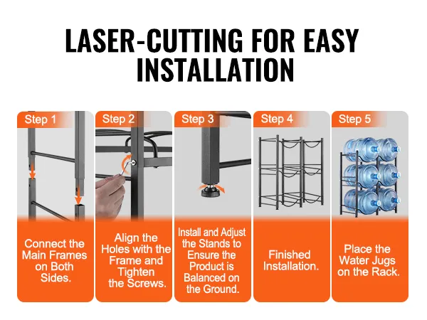 Easy Installation: Our water jug rack features laser-cut holes for precise and easy assembly. The rack can be assembled with the desired number of tiers and comes with a manual for quick setup.