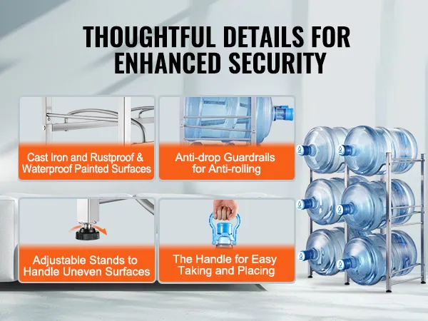 MULTIFUNCTIONEEL - De waterkanstandaard is ideaal voor woonkamers, kasten, keukens, garages, voorraadkasten, kasten, wasruimtes, sportscholen en kantoren. Deze standaard kan worden gebruikt om de ruimte efficiënt te organiseren en te maximaliseren.