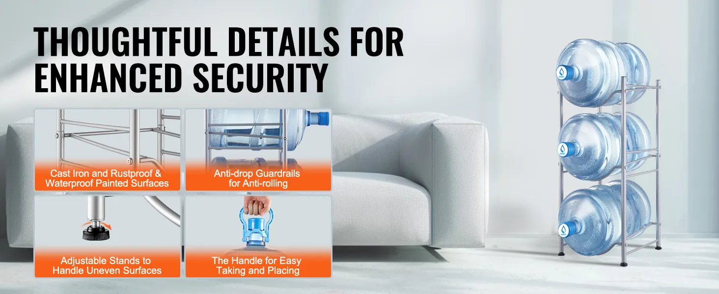 MULTIFUNCTIONEEL - De waterkanstandaard is ideaal voor woonkamers, opslagruimtes, keukens, garages, bijkeukens, kasten, wasruimtes, sportscholen en kantoren. Met dit rek kunt u de ruimte efficiënt organiseren en maximaliseren.