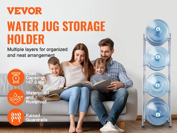 Versatile Use: The water jug stand is ideal for living rooms, storage rooms, kitchens, garages, food pantries, closets, laundry rooms, gyms, and offices. This rack helps you organize and maximize space efficiently.