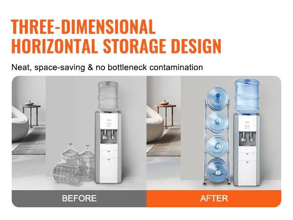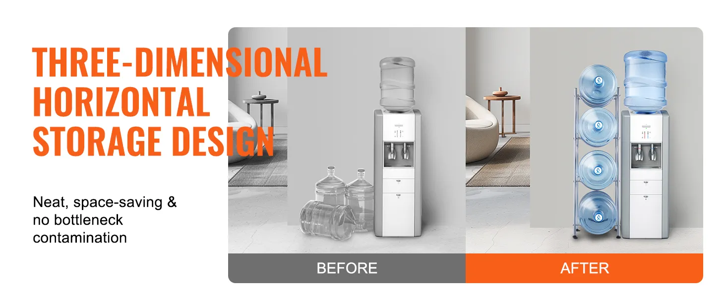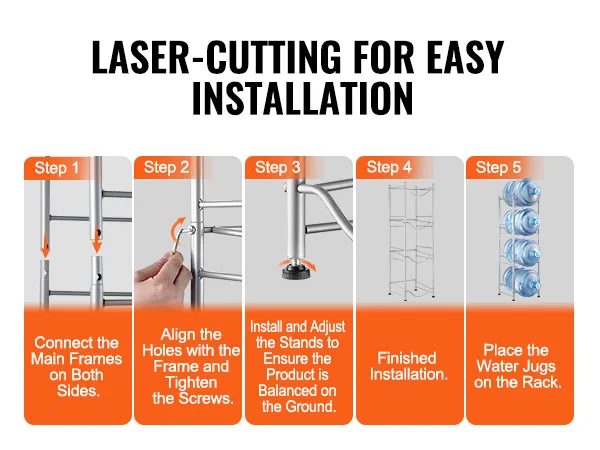 Easy Installation: Our water jug rack features laser-cut holes for precise and easy assembly. The rack can be assembled with the desired number of tiers and comes with a manual for quick setup.