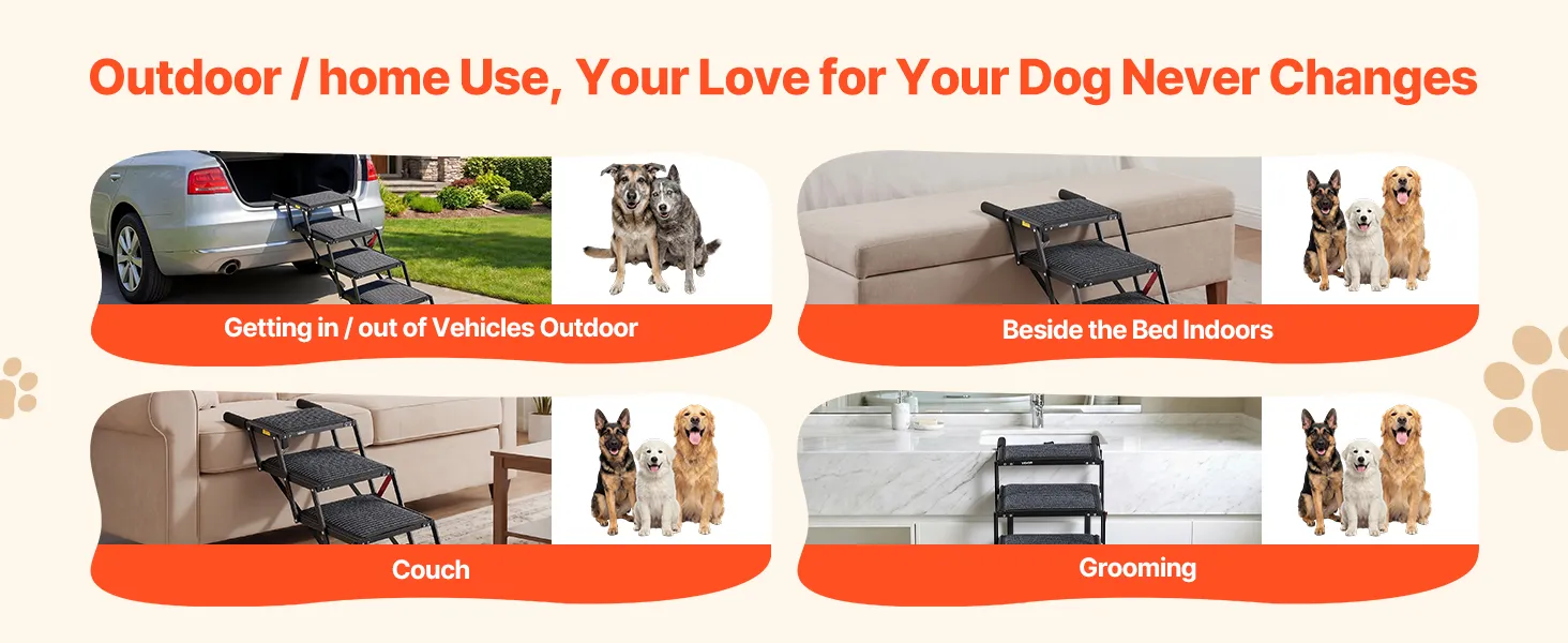 • Geschikt voor binnen- en buitengebruik: onze hondenhelling kan worden gebruikt in SUV's, auto's, vrachtwagens, op bedden, banken, kaptafels of dierenartstafels. Ideaal voor op reis, dierenartsbezoeken of gewoon om uw hond meer veiligheid thuis te bieden.